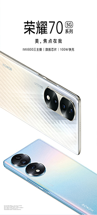 • 荣耀70 IMX800三主摄 双曲屏设计 高通骁龙778G Plus 66W快充 5G手机 8GB+256GB 墨玉青