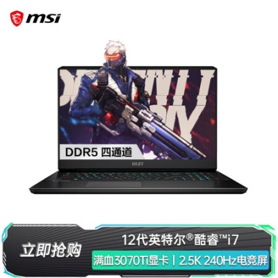 • 微星(MSI) 冲锋坦克GP76GP66游戏本 双显三模笔记本电脑 16G内存1T固态 12代酷睿 i7/D5/3070Ti/2.5K240/17.3