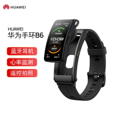 • 华为手环B6 运动手环 智能手环 蓝牙耳机/心率监测/触控/遥控拍照/扫码支付/Android&IOS 运动款曜石黑