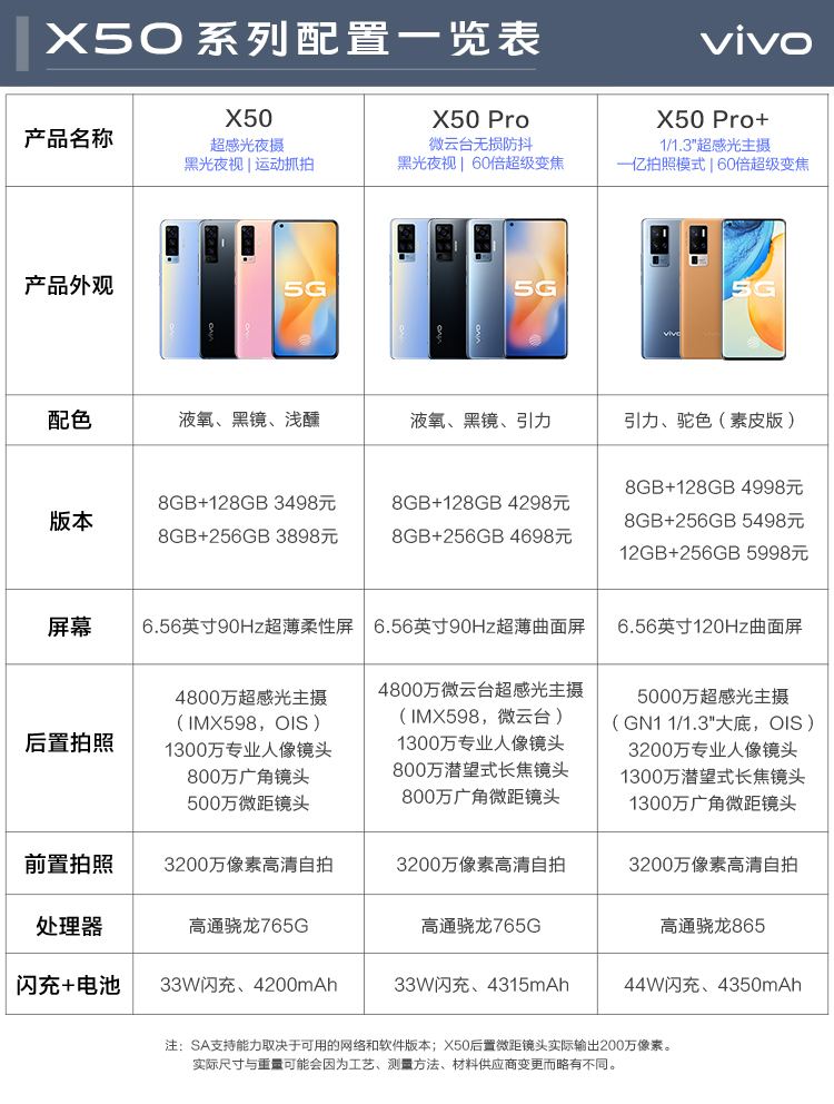 商品名称:vivo X50 5G手机 8+128GB 黑镜 超感光夜摄 后置4800W像素 90Hz超薄柔性屏 双模5G全网通手机